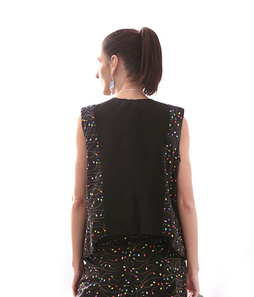 O Colete Estampa Pipas é a terceira peça versátil que eleva qualquer produção. Para um look casual e autoral, combine com jeans de cintura alta e t-shirt branca básica, deixando a estampa ser protagonista. No trabalho, use sobre uma camisa de linho ou blusa de seda com calça alfaiataria para um ar executivo criativo. Para ocasiões especiais, aposte no colete sobre um vestido midi liso ou com conjunto monocromático — a estampa Pipas adiciona personalidade e movimento sem pesar no visual.