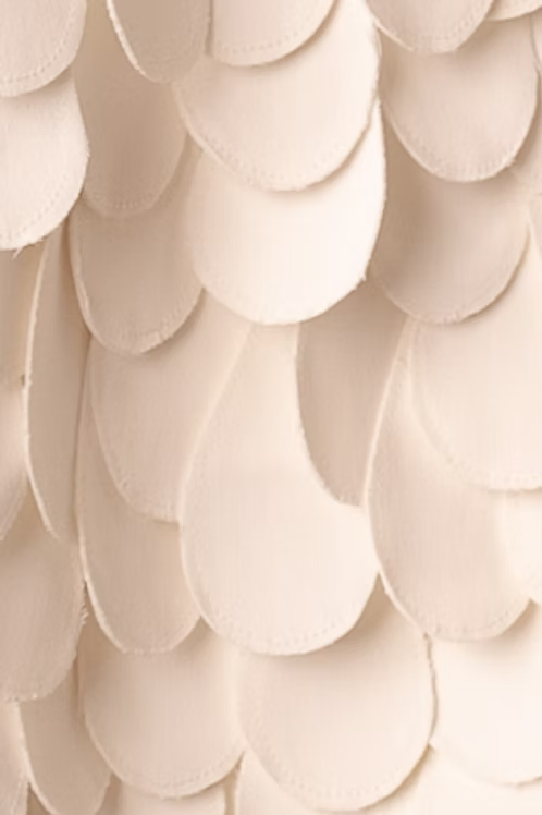 A Jaqueta Penas Aplicadas é uma peça de autor que combina técnica artesanal e design contemporâneo. Cada pena é cortada, costurada e aplicada manualmente em um processo de 90 horas de trabalho. O tecido estruturado com aspecto de couro traz sofisticação e durabilidade.